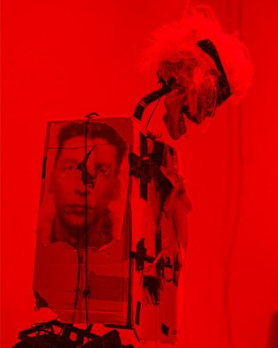 Die Box (ca. 2m x 2m x 2m) steht in meinem Atelier. Meistens lerne ich die Männer über GAYROMEO kennen. Die Box ist der Freiraum, in dem die Männer machen können was sie wollen, wozu sie Lust haben, zeigen können, was sie gerne zeigen und tun wollen: ihre Kunst, Performances, Sex mit Partnern, Fetische zeigen, Dildos benutzen, in die Ecke pinkeln.
